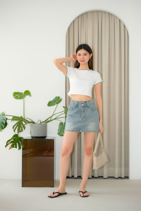 NewRM39.90Ribbed textured Soft & cool fabric Round neck Stretchable fabric Material: Cotton elastane INCHES S M BUST 28-36 30-38 SLEEVE 4.5 4.5 LENGtH 15 15.5 * Model wears S size * Model height 175 cm