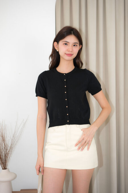 Front open button Ribbed textured Material: Cotton knit elastane INCHES Free Size SHOULDER 12.5 BUST 32-36 SLEEVE 8.54 LENGTH 18 *Model wears S size *Model height 175 cm